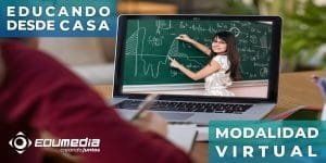 Young student watching lesson online and studying from home. Young woman taking notes while looking at computer screen following professor doing math on video call. Latin girl student studying from home and watching teacher explaining math formula on video chat.